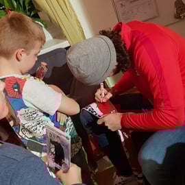 ferngesteuerten Autos zu Brettspielen, bis hin zu Bastelsachen und natürlich vielen Fanartikeln. Zudem wurden alle Autogrammwünsche direkt mit persönlichen Widmungen erfüllt und Trainer Jeff