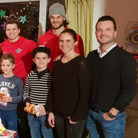 Tomlinson lud die Kinder spontan noch zu einem Hockeyspiel der SCRJ Lakers inkl. Besuch in der Mannschaftskabine ein. Zum Ausklang des Abends servierten die Wohngruppe Lattenberg einen